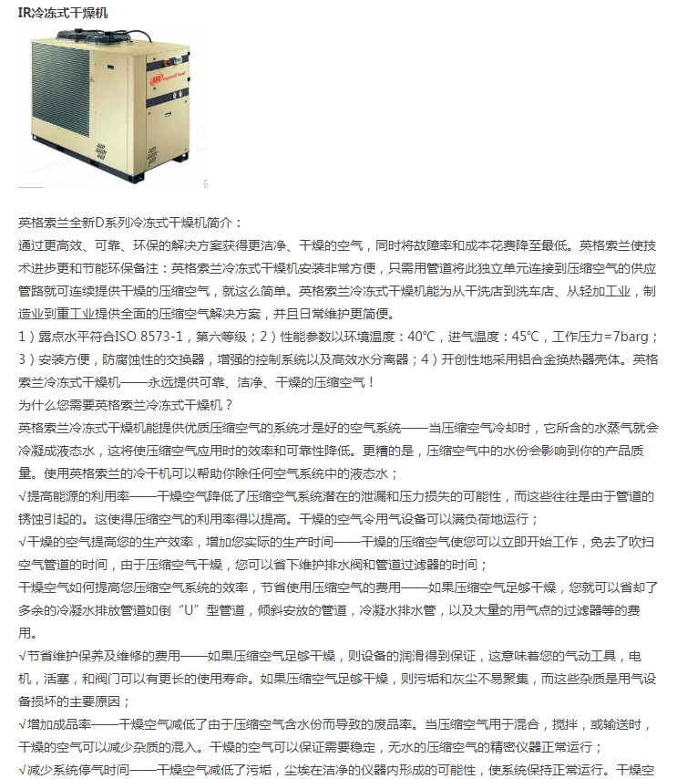 濟(jì)南銳博特機(jī)械設(shè)備有限公司是英格索蘭空氣壓縮機(jī)的授權(quán)代理商,代理銷(xiāo)售美國(guó)英格索蘭全系列的空壓機(jī)及后續(xù)處理設(shè)備。公司自成立以來(lái),經(jīng)過(guò)公司全體同仁不斷努力,開(kāi)拓創(chuàng)新,以?xún)?yōu)良的技術(shù)、完善的售后服務(wù),使得公司贏得了一個(gè)又一個(gè)的誠(chéng)心客戶(hù)。我公司擁有多名專(zhuān)業(yè)的銷(xiāo)售及售后服務(wù)人員,為客戶(hù)提供空壓系統(tǒng)的售前、售中及售后的全方位優(yōu)質(zhì)服務(wù)。另公司有多名具有英格索蘭壓縮機(jī)授權(quán)服務(wù)證書(shū)的服務(wù)工程師,能維修和保養(yǎng)國(guó)內(nèi)外各種品牌空壓機(jī),公司各種國(guó)內(nèi)外品牌空壓機(jī)配件庫(kù)存齊全。